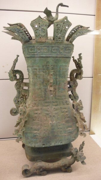 下面第一张图就是河南博物院的镇院之宝莲鹤方壶, 壶侧神兽造型离奇夸张,壶顶莲瓣开吐,鹤立其中,作展翼状,宛若欲一飞冲天,这是我见过的青铜器中最精美的。