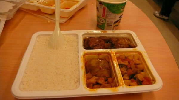 2:20登上回上海的D184次。火车晚点20多分钟3:04才发出。 感觉动车上的盒饭比普通列车上的好许多,20元有汤有肉。