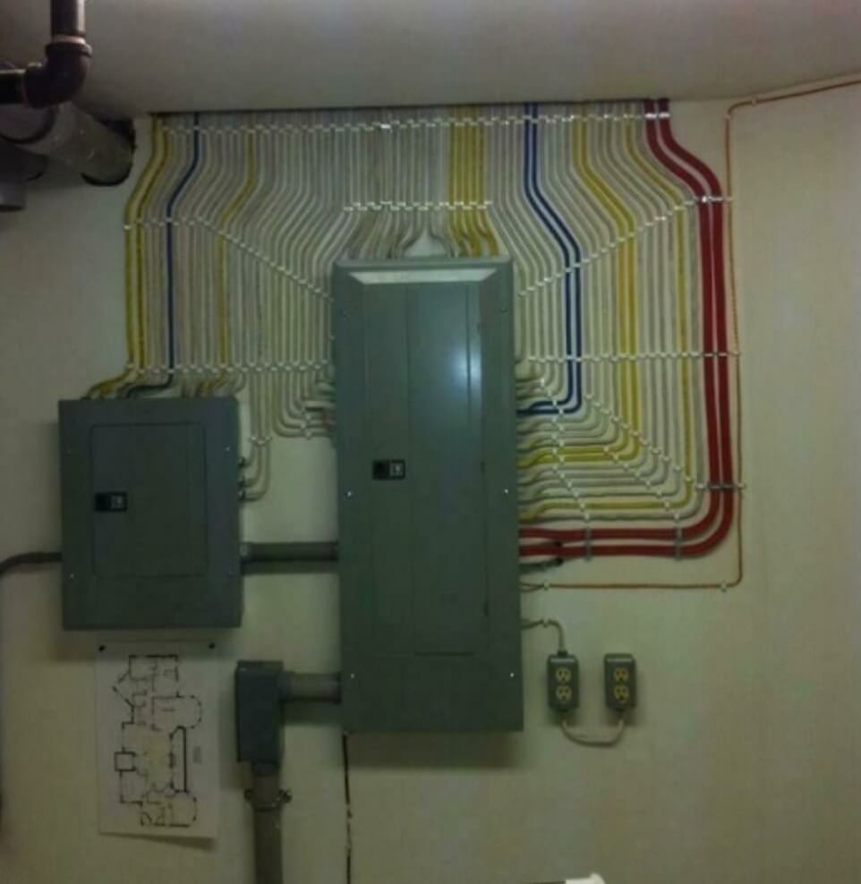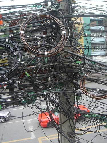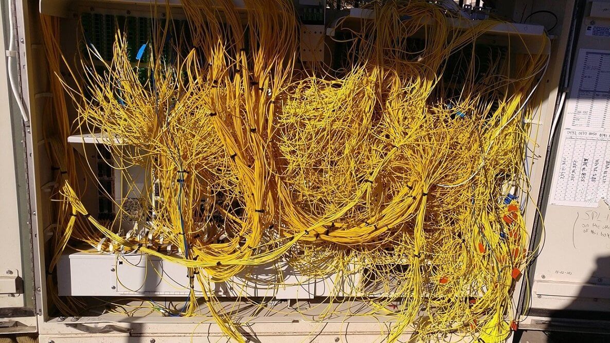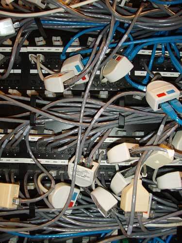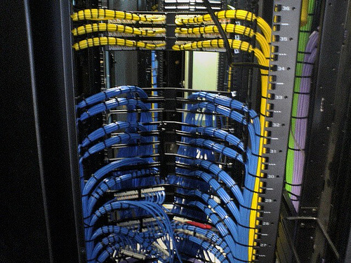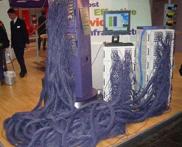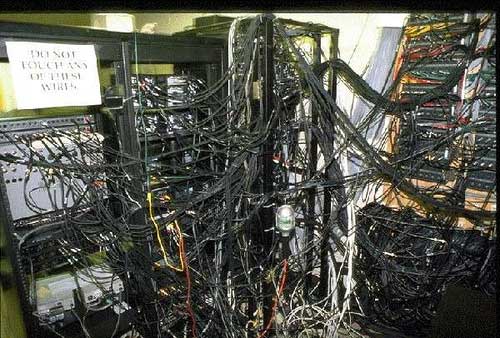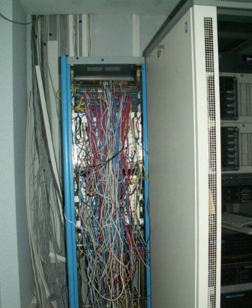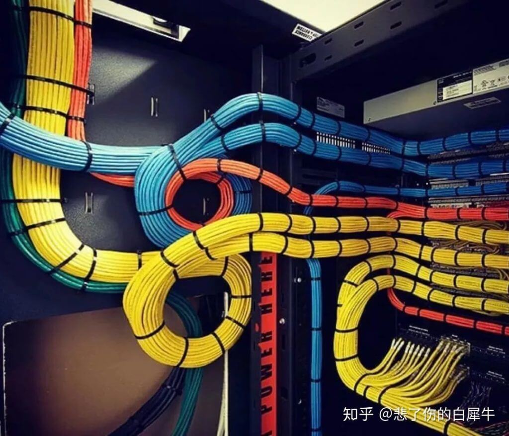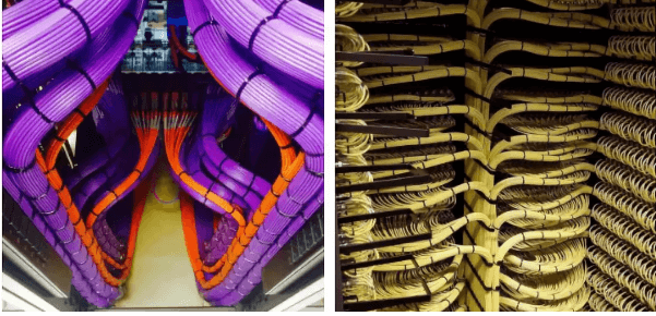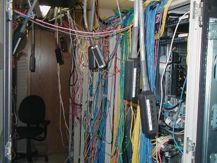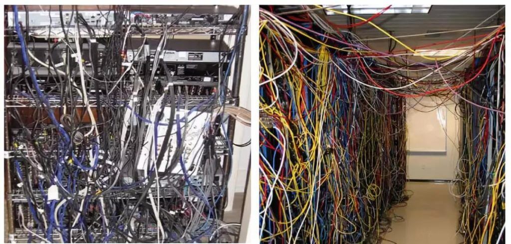 机房布线是个技术活。你既可以把它搞成一个艺术品,也可以让它乱成像屎一样。来看一下这里面的反差吧。