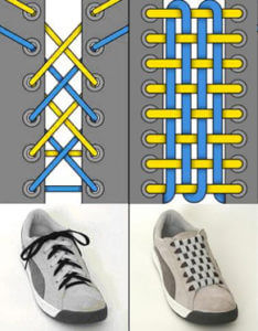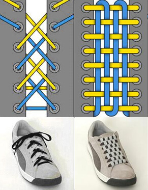 不可不看的16种鞋带新奇系法COM, OHENG06/09/2011备忘记录 没办法天天买新鞋,那就换着样的系鞋带吧。和领带丝巾一样,鞋带也有各种各样的系法。下面是16种新奇的鞋带系法,换种系法换个心情吧。 还有更怪的系法,“单身”,“中国”啥的。不过大家都不愿被看成怪物,这就不介绍了,自己百度吧。
