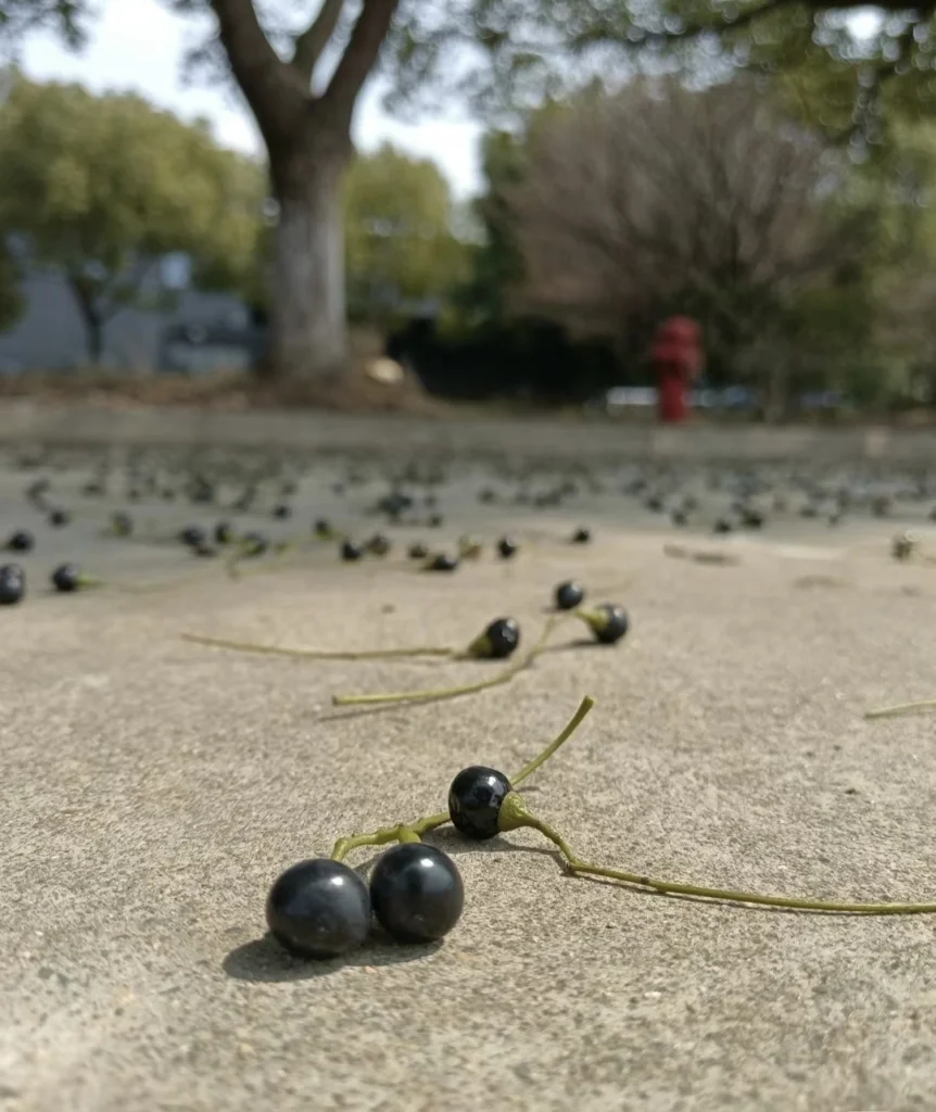 - 春分时在上海街头还会看到一种黑色的小浆果,这个是香樟树籽,不能吃的欧。