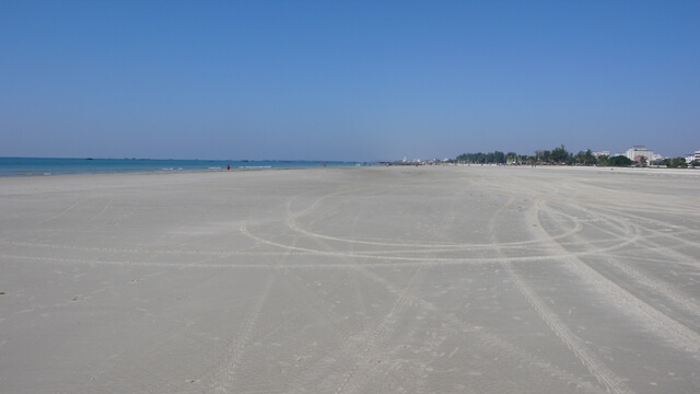 银滩的游人比较多地方也大,不过这里不能叫沙滩,只是个海滩。远处的地方一眼望不到头,有点戈壁的味道。这季节水上活动不多,沙滩车倒是很流行。当地的报纸说明年银滩要恢复收费,要100元/人,我觉得这里不值这个价。顺便也看了一下银滩附近的宾馆,都离海挺远的,不如彩云宾馆。