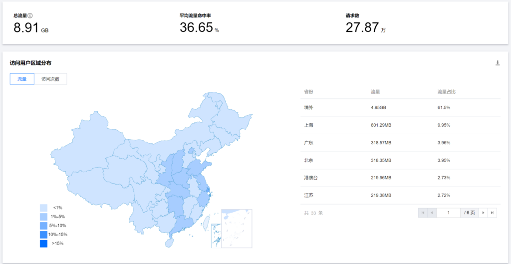 - 61.5%的流量是境外的,我的CDN对他们不起作用,我还要付回源流量的钱