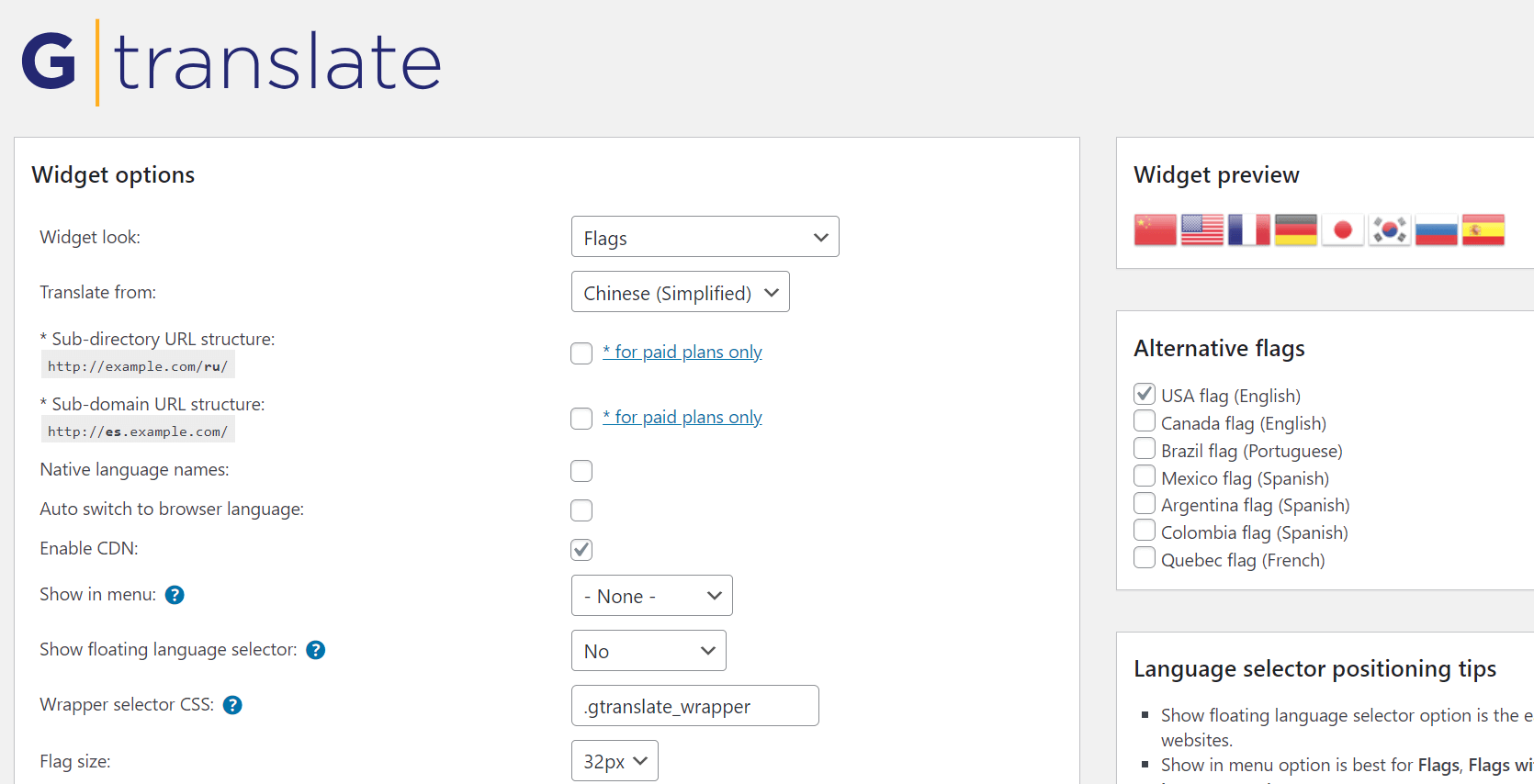 - 云端翻译:与其他翻译插件不同,GTranslate仅提供云端翻译。这意味着你不用在服务器上保存翻译后的内容,这可以减少你的存储需求并提高网站的性能。
