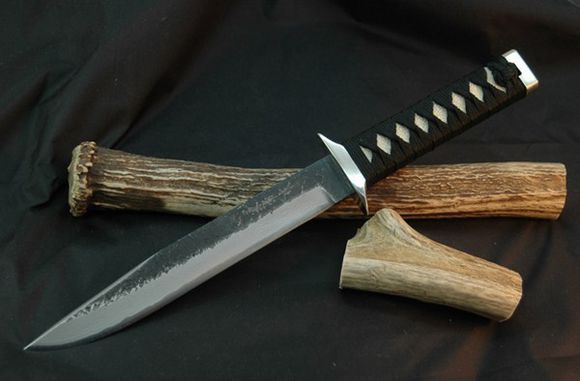 日本日立金属,安来钢自古就是制作刀具的高级钢材,由日立金属股份有限公司的安来工厂研究生产,日本传统刀具都使用安来钢制作。出云地区的山川中富含一种高纯度的砂铁叫攸”真砂”,因水流和铁的比重不同。使砂铁矿沉甸于河流底部,这就是安来钢的原料(玉钢)。安来钢为制作日式刀具所用的碳素钢,分为白纸、黄纸、青纸等系列,这种分法是为了区分生产的梯次与顺序,用有色的贴纸贴在产品上以示区分。一般而言,安来钢各种钢材硬度相当.`但特征不同.如白纸系列适合用来制造厨具用刀、小刀、剃须刀、等产品,黄纸多被用于制造剪刀.锯子、农具等,青纸系是含钨的高级钢材,主要应用于优质刀具,如猎熊刀、溪流刀.野外求生刀等。安来钢的硬度在60HRC以上。关兼常”锻炼狞猎”和”百炼狩人匠”系列刀均采用青纸.佐治武士系列刀则大多采用白纸. 关兼常 青纸2#24层大马士革刃材
