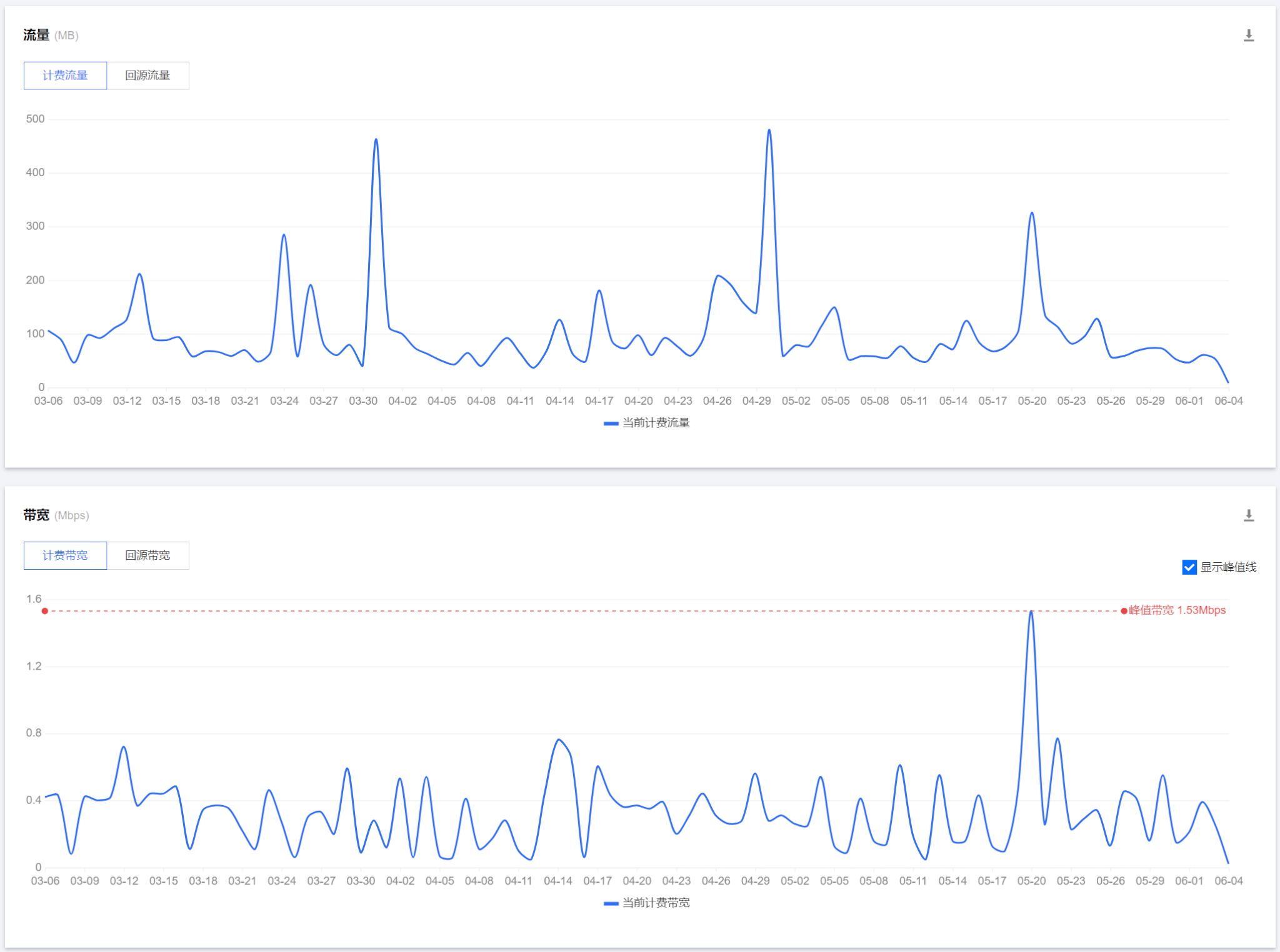 另外我还查看了腾讯云上的数据报表,下面是近3个月的报表。