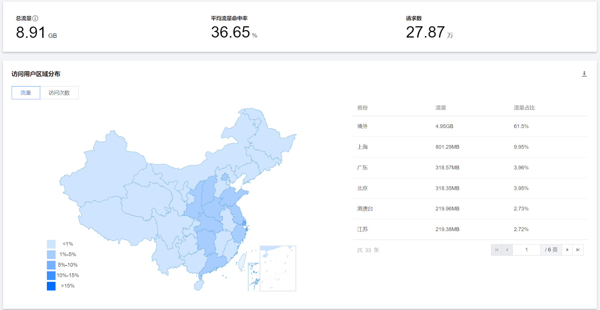 - 61.5%的流量是境外的,我的CDN对他们不起作用,我还要付回源流量的钱