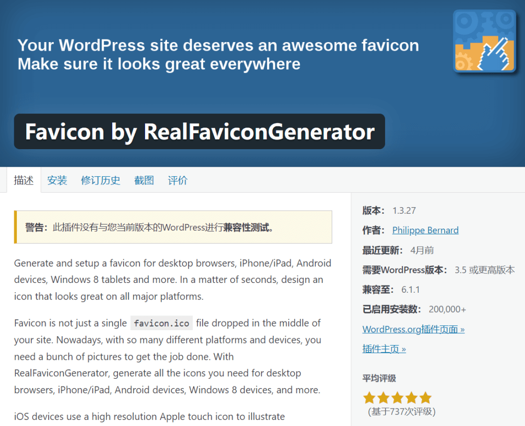它既能帮你检查现有的favicon,还能帮你生成新的favicon。对wordpress网站来说,他还有一个贴心的小插件,让你一步完成所有favicon的生成工作。