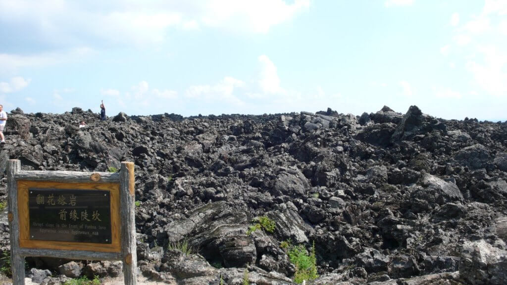9点半到山脚下,头一次看火山景色,火山样子有点像烧卖,不算高,却很壮观。老黑山和远处的火烧山属于新火山。听人说是在1720~1721年喷发的。在山脚下看的到火山灰,火山熔岩看上去也很嫩。上面好像有泥的样子。