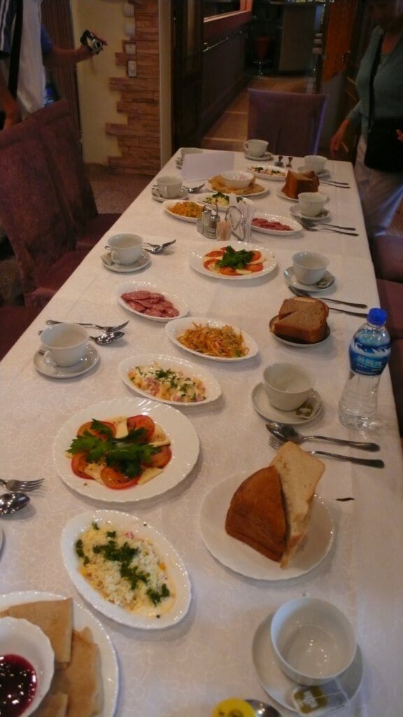 北京时间中午12点,在当地一个餐馆午餐。相比国内旅行团的饭菜,这里的团队餐算是很不错了。