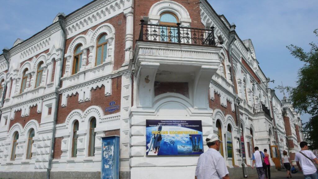 早上8点到海关,8:30的船。这船的航程只有7,8百米,只航行5分钟就到了对岸的布拉格维申斯克(布市)。但据说船票要1百3,4十元。俄国人办事的效率要比我们低不少,俄罗斯入境花了近1小时。布市号称俄罗斯远东第三大城市,其实就是一个20万人的小城市。