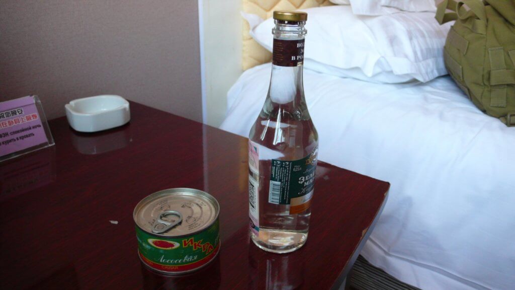回到黑河换了家酒店。 前天住的华源商务酒店位置很好,但有点旧了。旅行社给我推荐了一个叫博丰的酒店。今年上半年刚开的。看了下的确挺好,120元的价格也不错。回到房间,看见我买的酒有点后悔,为了这小一瓶酒(人民币20元),明后天乘飞机时还要托运行李,挺麻烦的。觉得今天就把它喝了,40度的酒还挺厉害的,6点多钟就睡了。