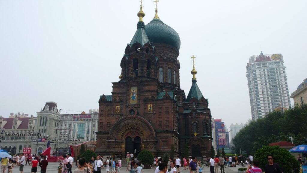 1元钱乘28路到圣*索菲亚教堂。这是哈尔滨的标志性建筑,拜占庭式的东正教堂。这原本是俄军的随军教堂,到现在也就100年左右的历史。 教堂外部看上去还不错就是小了点。 花15元买票参观教堂内部,里面是哈尔滨老照片站,装饰也有些破旧了。11点半有免费的解说,我没有刻意去等,逛了一圈就离开了。