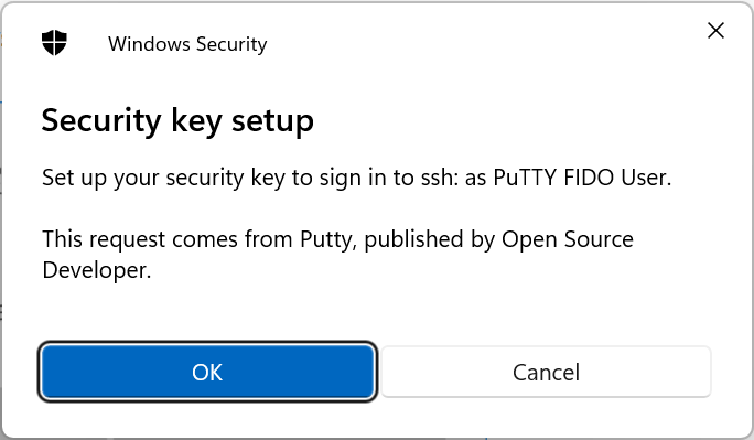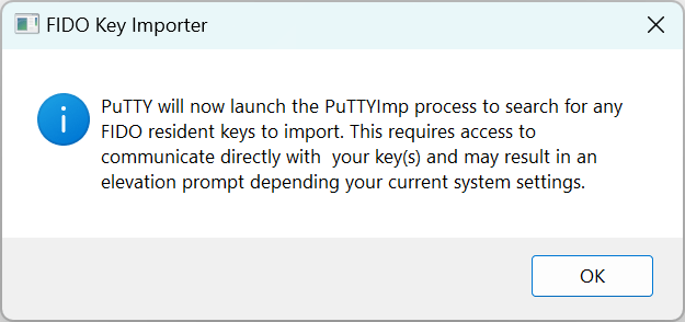 - 进入connection->SSH->Certificate->FIDO Tools,点击Import keys,弹出窗口点OK