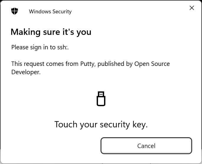 - 输入用户名按回车后,会跳出下面这个窗口,手指按Yubikey进行确认