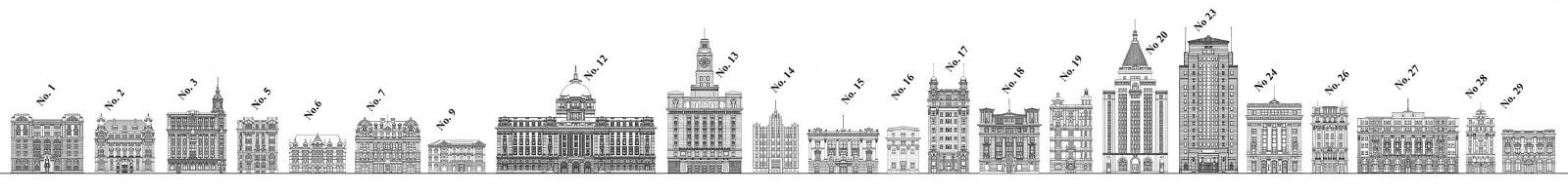 | 中山东一路19号 | 1908年 | 汇中饭店大楼 | 和平饭店南楼 |